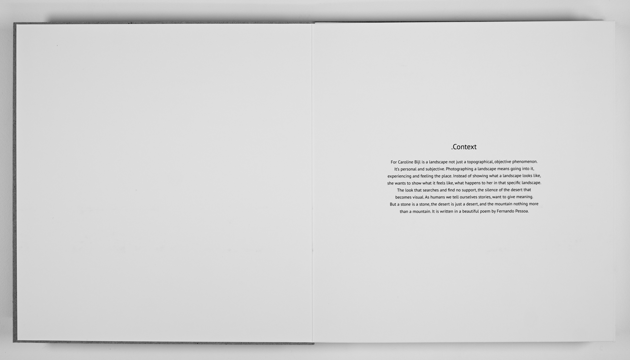 .Context is a poetic reflection on time spent in specific landscapes such as deserts and volcanic landscapes, captured during long time travels. In these environments, Caroline experienced the overwhelming force of earth and nature, the vastness that robbed her of any sense of footing, the silence that was at once deafening and oppressive and above all the existential awareness that such an overwhelming landscape brings.